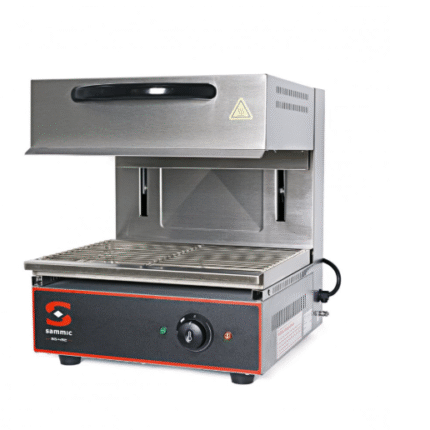 Barbacoa de fuego directo rápidas y limpias. Con recipiente de agua que humidifica los alimentos y no los reseca.