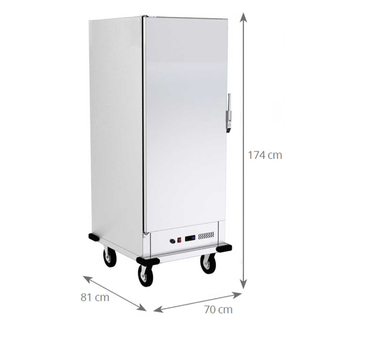 - Tiene una capacidad para 22 bandejas GN 2/1 o 44 bandejas GN 1/1 con una altura máxima de 5,5 cm.