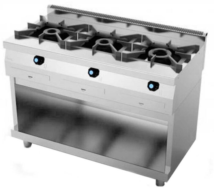 Disponemos de quemadores de fundición especial, de diferentes tamaños y potencias para cubrir las necesidades de la cocina. En algunos modelos existe la posibilidad, según la necesidad, de convertir la parrilla en planchas lisas o acanaladas. Todos los quemadores integran válvulas independientes con llama piloto y termopar.