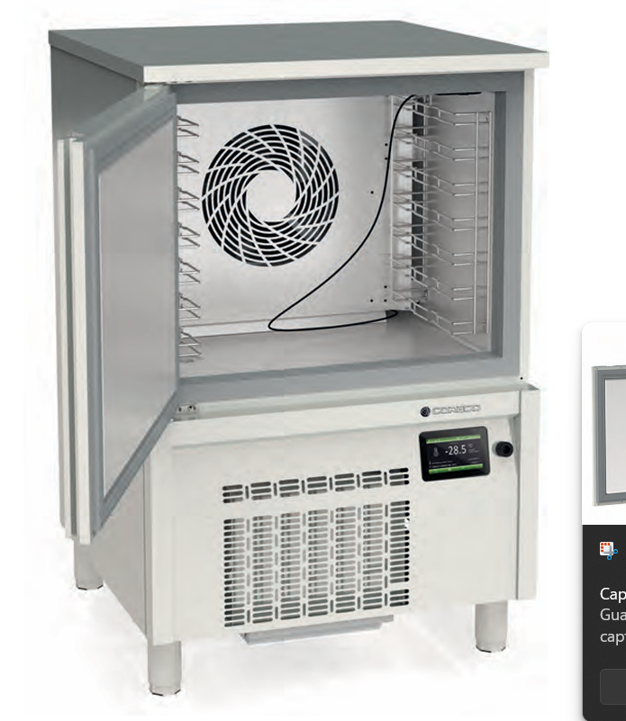 Ideal para panaderías y cafeterías, este abatidor permite un enfriamiento rápido, preservando la calidad y frescura de los alimentos.