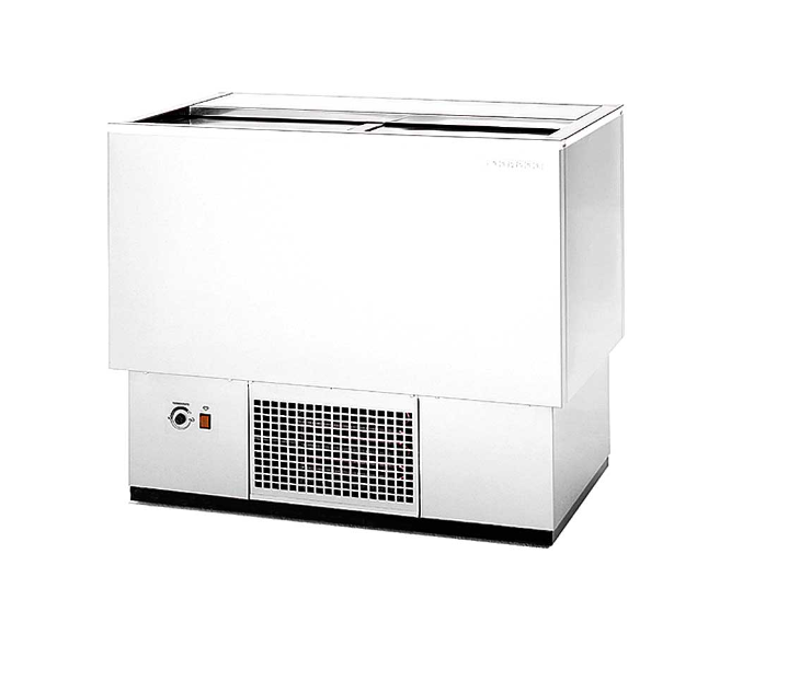 Enfriador de botellas con exterior en acero plastificado blanco e interior en acero galvanizado. Con control de temperatura y unidad condensadora ventilada y extraíble.
