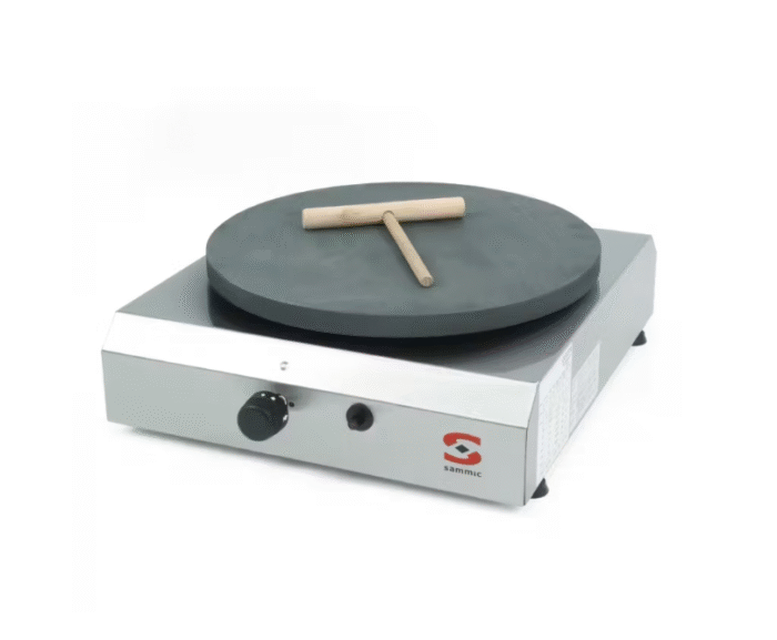 Crepera a gas simple con 1 placa de Ø 400 mm. Fabricada en acero inoxidable. Superficie de la placa de hierro colado con tratamiento antiadherente. Sin recubrimientos y fácil de limpiar.