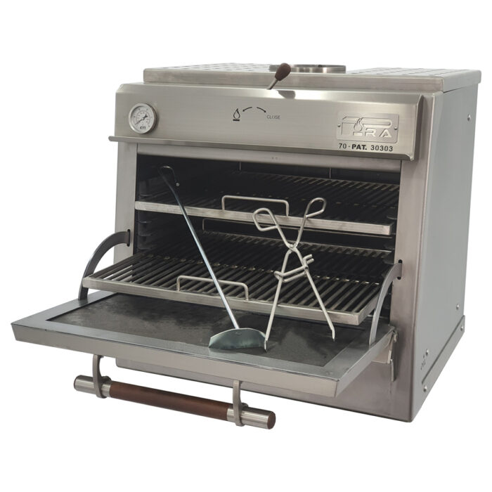 CARACTERÍSTICAS GENERALES: Sistema refrigerante Piracold® • 7 guías • Cajón recogedor de cenizas • Corta llamas integrado • Termómetro • Regulador de tiro integrado • Recogedor de aceites integrado