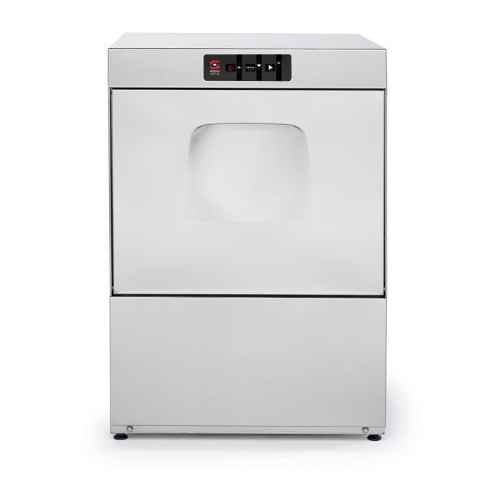 Construcción de acero inoxidable. Brazos de lavado y aclarado independientes. Nivel de agua automático. Calentador de agua eléctrico automático en la cuba. Dispensador de abrillantador peristáltico incorporado. Resistencia en cuba y caldera. Sistema de doble filtro en la cuba. Bomba de desagüe opcional Potencia total: 3,10 kW Tensión: 1 x 230 V Capacidad del depósito/caldera: 12 L / 2,7 L Consumo de agua/ciclo: 2,4 litros
